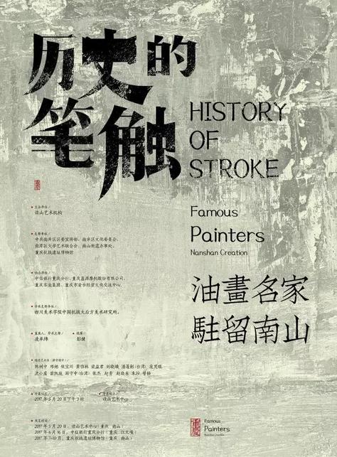 2016年重慶“兩會(huì)”期間,參加市政協(xié)會(huì)的幾位美術(shù)界委員商議,為紀(jì)念抗日戰(zhàn)爭(zhēng)全面爆發(fā)80周年,擬舉辦一次題為《歷史的筆觸》駐留創(chuàng)作活動(dòng),邀請(qǐng)重慶、成都兩地的優(yōu)秀油畫家,追循前輩大師的足跡,創(chuàng)作一批反映抗戰(zhàn)歷史、弘揚(yáng)抗戰(zhàn)精神的作品。駐留地選定重慶南山,主要緣于南山上有以重慶抗戰(zhàn)遺址博物館為中心的一大批抗戰(zhàn)遺址,包括英國(guó)大使館、空軍抗戰(zhàn)紀(jì)念園、國(guó)民政府經(jīng)濟(jì)部中央工業(yè)實(shí)驗(yàn)所、美軍招待所、黃山防空炮位、泉山炮臺(tái)、黃山防空洞、中央國(guó)際電臺(tái)、中華劇藝社等多達(dá)38處遺址。駐留活動(dòng)結(jié)束后即舉辦同一命題的抗戰(zhàn)主題畫展。這項(xiàng)活動(dòng)由讀山藝術(shù)機(jī)構(gòu)主辦,四川美術(shù)學(xué)院中國(guó)抗戰(zhàn)大后方美術(shù)研究所為學(xué)術(shù)支持單位,中共南岸區(qū)委宣傳部、南岸區(qū)文化委員會(huì)、重慶抗戰(zhàn)遺址博物館為支持單位,南岸區(qū)文聯(lián)、南山街道、中信銀行重慶分行等為協(xié)辦單位。這項(xiàng)計(jì)劃得到來自成渝兩地和臺(tái)灣高校的16位油畫家的積極響應(yīng),2016年6月18日計(jì)劃正式啟動(dòng)。其后近一年時(shí)間里,藝術(shù)家們或集中或分別駐留南山進(jìn)行創(chuàng)作。截至2017年5月,共創(chuàng)作了89件作品。內(nèi)容涉及抗戰(zhàn)時(shí)期有影響的歷史人物、歷史事件、歷史場(chǎng)景等。有關(guān)于“重慶談判”和中共領(lǐng)導(dǎo)人與民主人士在一起共商國(guó)是;有描寫抗戰(zhàn)時(shí)期活躍在大后方的宋氏三姐妹;有記憶中的陪都城市街景和日機(jī)大轟炸下的重慶市情;有對(duì)戰(zhàn)火中滄桑歲月的回顧;也有駐足抗戰(zhàn)遺址前的寫生。作品藝術(shù)手法、風(fēng)格多樣,有采用寫實(shí)手法的,有傾向?qū)懸怙L(fēng)格的,有注重表現(xiàn)性和構(gòu)成意義的。展覽還特別邀請(qǐng)了兩位臺(tái)灣藝術(shù)家參展,體現(xiàn)海峽兩岸藝術(shù)家聯(lián)袂回溯全民族同仇敵愾抗擊法西斯的歷史,以及炎黃子孫自強(qiáng)于世界民族之林的信心。