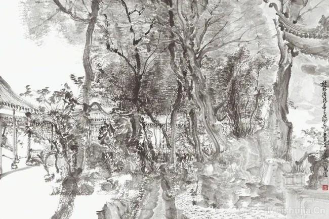 藝術家的創作都與他生長和成長之地密切相關,脫離文化土壤的藝術是無根無本的。“會景不在遠,蓬窗竹屋下,風月自賒。”能使人意會的景致不在于距離的遠近,即便在自己家的草窗竹屋之下,也可以享受到清風明月的悠閑情趣。《滄浪亭寫生》、《灘涂小景》、《蘇州寫生》系列等都很好詮釋了這一點。既是在畫一片具體的故鄉土地,也是在畫一種廣泛的遠方。畫中的風景并非純然的自然產物,而是藝術家透過記憶與情感,在細碎、具體的景物中幻化出的新的天地。藝術探索的最好方式,也許不是刻意的找尋,而是把自己交還給故鄉,交還給最質樸動人的生活。