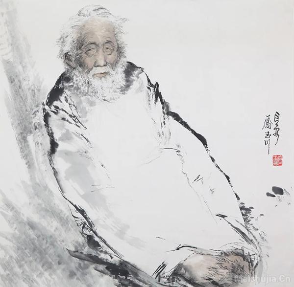 喬玉川是中國畫全才、通才,不僅人物、山水、花鳥三科兼擅,而且三科融會貫通,無論人物、山水、花鳥表現的都是人的精神、自然的生命、畫家的人格,這在當代中國畫名家中也比較罕見。三科會貫通的關鍵在于寫意筆墨。他早年在西安美院中國畫系學習,精通工筆,還學過油畫,非常悉素描寫實造型,經過幾十年的修養和歷練,他的寫意筆墨日臻純熟,表現力強,變化微妙,酣暢淋漓。他今年創作的古代和現代人物作品,已不是純寫實的造型,而是表現性的意象,幾乎完全是以寫意筆墨來塑造。他的人物形體吸收了山石的皴法,也采用了山石的結構,人物的面部或以線條勾勒,或以墨骨暈染。不僅如石刻玉雕,兼有山的陽剛氣勢和水的陰柔韻味。他的寫意筆墨干濕濃淡的虛實處理也體現了陰柔相濟、陰陽調和的道家美學。
