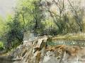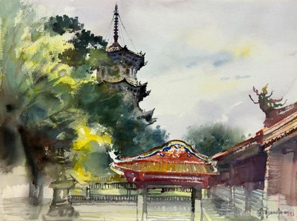 在他的筆下,水色不再是簡單的媒介,而是情感與思想的載體——山川草木在虛實之間盡顯靈秀,人文景致于筆墨之中暗藏溫度,靜物小品則于細膩筆觸里流露生活哲思。