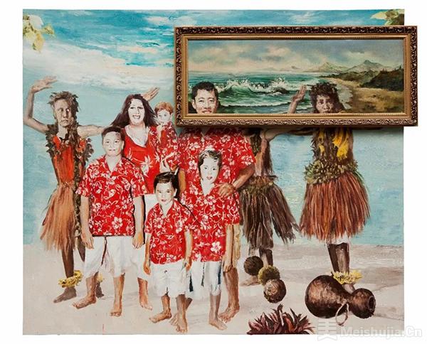李青在首爾舉辦的個人展覽中,聚焦于時尚模特兒、售貨員、中產階級度假者等“美麗”形象的呈現,這些形象以“儀式化”的姿勢擺拍,用于“社交媒體”。這些形象與錦緞的圖像疊加——錦緞是中國“計劃經濟”時代旅游外交的紀念品,再搭配一些當今的城市地標,例如首爾的樂天世界塔……事實上,在他的畫作中,這些圖像被轉化為空洞的符號,犧牲了其存在的本質,成為他者欲望的鏡像幻象。它們是獻給世界走向未知而危險的未來“成年禮”的祭品。這場“成年禮”正值中國農歷新年之際,中國人和韓國人都懷著對新年祝福的期盼慶祝這個節日。為了獲得祝福,我們究竟需要付出多少犧牲?