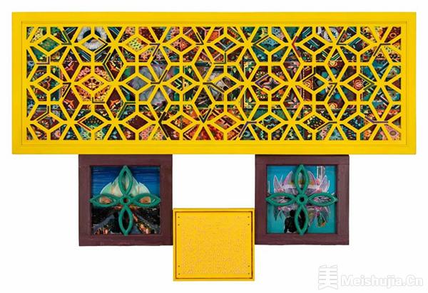 然而,李青也深知,這一切都離不開歷史……“當代”與歷史之間的張力,正是我們理解并應對這個不斷變異的世界的關鍵。因此,他引入了諸如從拆毀的建筑(包括“農家釘子戶”)中收集來的舊窗框等“歷史遺跡”,使其成為他繪畫的骨架,即建筑框架,進而將其延伸至他的裝置作品中,這些裝置作品往往也成為了“建筑”。反過來,這些“建筑創作”的嘗試也讓他的繪畫作品趨于“建筑化”。如今,這些作品被重新構建,框架交疊,不同的場景和圖像相互重疊,形成由互不相連的元素——建筑圖像、人物形象……組成的拼貼。然而,經過“社交媒體”的過濾,它們不再是現實世界的圖像;相反,它們成為了藝術家受雅克·拉康理論啟發所認定的“他者的欲望”的符號。[1]
