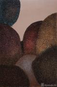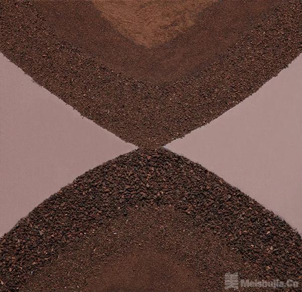 這批作品所呈現的,是材料的“物性”在重新獲得尊嚴之后能夠抵達的意義深度。那些赭色的顆粒,疏密之間自有節律,濃淡之中潛藏溫度,構成的肌理從不趨向裝飾,而始終指向一種更為根本的自然物屬性——生長、消散、沉積、殘留。觀看這些作品,你可能首先感知到的是一種觸覺性的親近,那是植物與土地的氣息,是時間作用于有機物質后留下的痕跡——這種感知先于任何觀念解讀而存在。