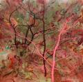 “花·果·山”在此,已然徹底褪去了其膾炙人口的神話敘事表層與集體想象的外衣,內化為一種獨特的藝術創作方法論與一種深邃精神結構的雙重隱喻。它首先指向一種豐盈而有序、層疊而交織的動態平衡的認知層次與價值序列:如花般精微、敏感、瞬息萬變卻直指存在核心的感性觸須與初覺;如果實般飽滿、沉重、凝聚著時間能量以及社會欲望與物質密度的實體性存在;如山巒般穩固、蒼茫、渾厚,提供精神仰止、心靈歸依與超越視野的永恒架構。