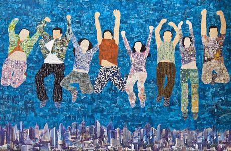 在藝術圈兒,有那么幾位靠玩兒火玩兒出花樣來的,薛松就是其中的一位。薛松的創作過程非常枯燥,把畫冊撕開用火燒,燒成的碎片變成了他作品的語言和素材,然后根據構思粘在畫布上。