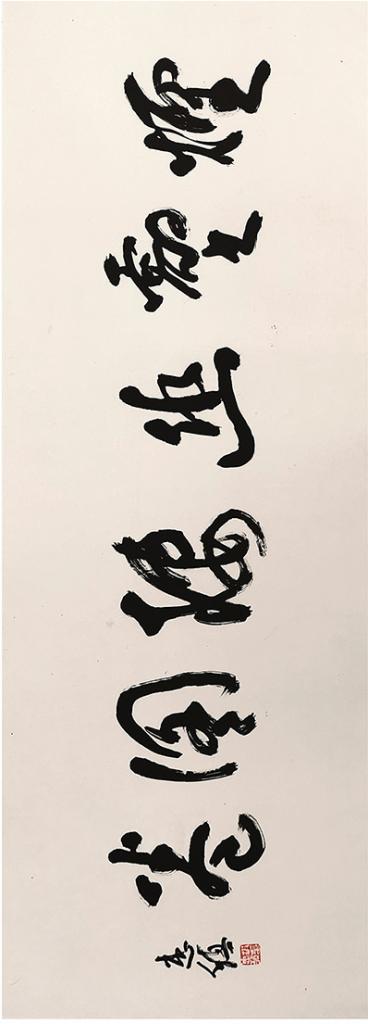 圖卷中花鳥、根石等具體形象表現上,似是而非,意象生成,似花鳥、又不是“花鳥”,是根石、又不是“根石”。且早已擺脫傳統花鳥畫的范式。形、線、色、墨等基本要素隨之內容題材形式的轉換,追求渾然一體,一派化機的效果上改變而改變,花鳥是大自然中最有靈性的生命,畫卷中作為一種文化符號,或喻為蒼茫天穹下游動不息的游魂,隱喻在幽深廣褒無限的大自然中,與大地這些無言之承載物“根石”渾化一體,隱射出某種特定語境下情緒的反映,亦是心靈深處釋放自我生命情感的最佳藝術載體。