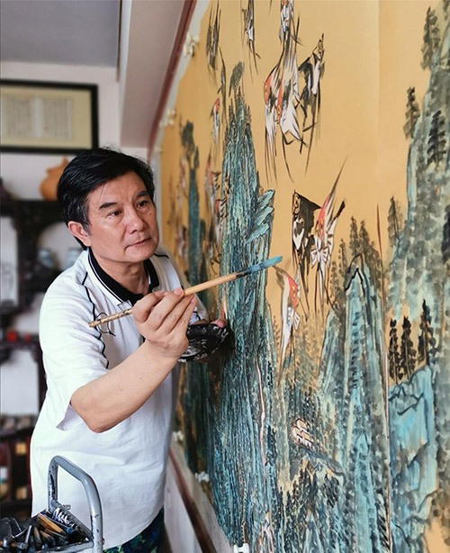 吳學斌抓住了熱帶魚這三個最基本的特征,也是魚的三個最基本的動態,沒有在乎魚有多少條紋路、有多少片魚鱗。他說,如果像工筆、油畫一樣去表現熱帶魚,就完全失去了中國寫意畫的韻味,過于求細膩細致,還不如拿張照片去噴繪放大,上墻即可。