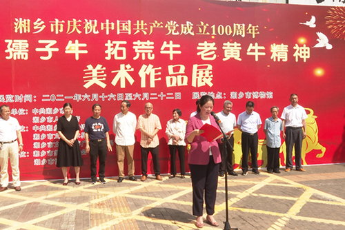 周賞玲在開幕式上指出,文藝是時代前進的號角,最能代表一個時代的風貌,最能引領一個時代的風氣。湘鄉大地翻天覆地的變化,是“三牛”精神最可貴的生動實踐,是藝術創作最寶貴的生活源泉,要始終堅定黨的領導,大力發揚孺子牛、拓荒牛、老黃牛精神,以不怕苦、能吃苦的牛勁牛力,在新時代創造新的輝煌業績,為實施“三高四新”戰略,建設“一點三區”,創建全國文明城市做出新的更大貢獻。