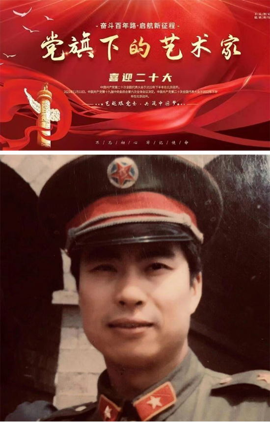 與湖北美院謝珍珠教授及八一電影制片廠三大戰役編劇李平分戰友戴常洲同學在部隊采風。