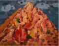 第三重境界為看山仍是山,看水仍是水,即作品《紅色山巒》、《兩座山》、《綿延山谷之一、二》、《帶藍色天空的紅山》、《山的告白》等。李有杰交合山的生命之氣,于凝神之刻通過內外感覺占據對象的形式 ( 包括線條、形狀、色彩、空間、節奏等),充分感受形式的親和,心靈勃然而生感動之情,在激情的熔鑄下心靈直覺力直透對象的內部,心與山交會,從而悟得對象的內在意蘊。正如李有杰就此展覽分享到:“對山的生命體驗經歷越多,對自我的認知也就越深入和豐富。曾經在某些山上的某些瞬間仿佛忘了自我,進入另外的時空,或者重新認識了自我,這都是山給的恩賜。這些積壓在身體里沖動,夢中出現過的一些場景也就自然來到了畫布上。”