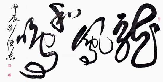 劉恒志的書法里滾動著大海的氣魄,其濃墨飽蘸的情感如同巨浪般翻滾,在宣紙上洶涌澎湃。他那縱橫馳騁的一個個風姿各異,氣象萬千的龍字,好象就是從波濤浩瀚中騰躍出海面,橫空出世的。劉恒志教授縱情創造的大大小小、百態千姿的龍字,令人愛不釋手,觀賞不盡個中意趣。劉老師筆下戛戛獨造的龍字更仿佛昭示人們:我們是龍的傳人!我們是龍的子孫!我們從遠古飛來,我們讓時代煥彩,我們創造更加美麗的國家和騰飛的未來!