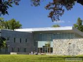 設計強調干凈的元素形式,自然材料的使用使她的建筑與周圍景觀融合