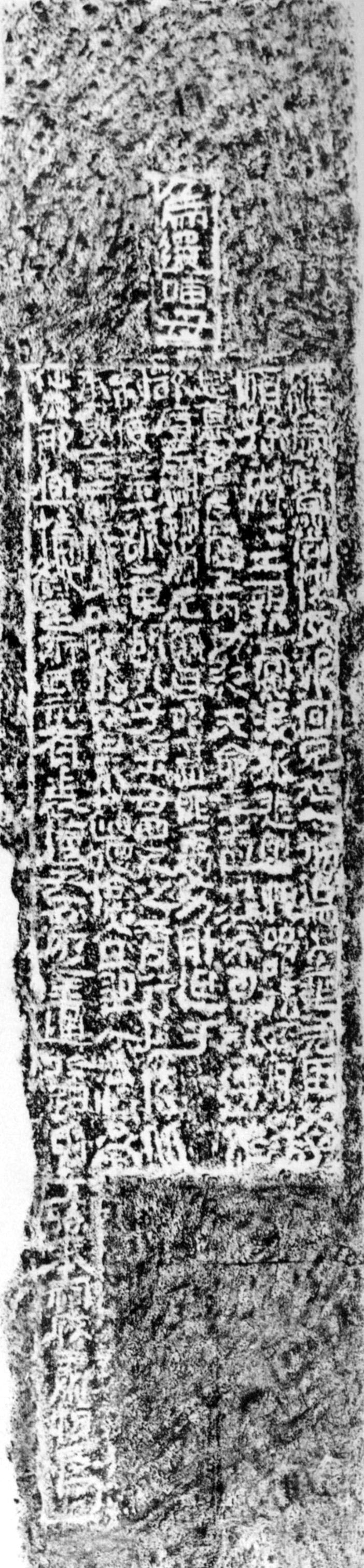 此石1964年出土于北京西郊石景山。無年月,存陽文“漢幽州書佐秦君之神道”10字。藏北京首都博物館。同時發(fā)現(xiàn)的有石表、石柱、石柱礎(chǔ)、石闕頂?shù)取J涛挠小坝涝吣晁脑隆钡茸謽印!坝涝睘闁|漢和帝年號,凡十六年(89~104)。公元105年陰歷四月改元“元興”,刻文仍題“水元十七年”,當(dāng)是由于遠(yuǎn)離京城,詔令未至之故。其書大小參差,多用方折。筆畫圓勁如截鋼絲,氣勢雄渾,別具一格。