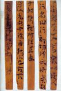 一九七一年,甘肅省博物館在甘谷縣漢墓中發現二十三枚木簡。簡長二十三、寬二點六厘米,松木制作,每簡書兩行,背面上端編寫順序號,連編成冊后書寫。簡文整齊分為三節,可清楚地辨認出整齊秀麗的八分體字,但是大部分簡牘已朽碎。