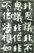 《北齊文殊般若經(jīng)碑》,正書,刻石無年代,以書法風(fēng)格列入北齊。文殊般若經(jīng)書法不似隋唐以后楷書注重波折,起收筆處不露筆鋒,行筆遲緩,落筆凝重,結(jié)體茂密,風(fēng)潤(rùn)厚美,用筆平衡莊重,不作險(xiǎn)峻欹側(cè)之筆,故顯雍容大度,整體看來似《泰山經(jīng)石峪金剛經(jīng)》。清楊守敬《平碑記》稱“平情而論,原非隸法,出以豐腴,具有靈和之致,不墮寒儉之習(xí)耳”。