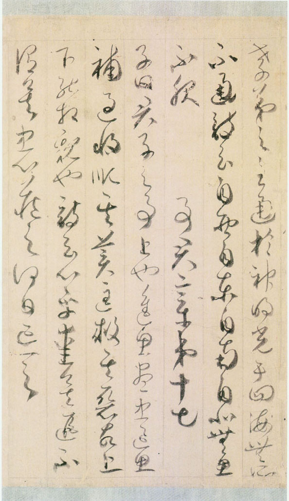 本卷以草書寫“今文孝經(jīng)”本文,每行四字至十六字不等,共一千余百余字。無署款。據(jù)卷末小楷識語“建隆二年(961)冬十月重粘裱賀監(jiān)墨跡”,推測為賀知章之作。北宋《宣和書譜》中亦著錄有賀知章所書孝經(jīng)。《孝經(jīng)》全卷通篇略取隸意,融入章草,氣息高古,點畫激越,粗細相間,虛實相伴;結(jié)體左俯右仰,隨勢而就;章法猶如潺潺流水一貫直下,充分地體現(xiàn)了他那風(fēng)流倜儻,狂放不羈的浪漫情懷,歷來為文人學(xué)者所稱譽。十七世紀后半期傳入日本,明治年間由近衛(wèi)家進獻皇室。2006年3月13日至2006年4月26日上海博物館舉辦“中日書法珍品展”,該作品首次回到祖國。