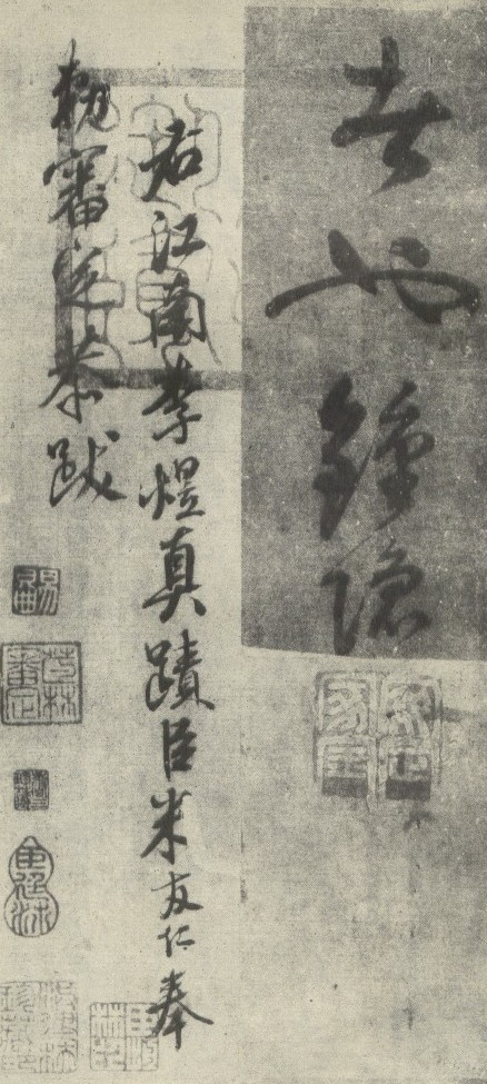 對其書法,他傳二王執筆法,稱為“拔鐙法”,擅長行書。陶谷《清異錄》曾云:“后主善書,作顫筆樛曲之狀,遒勁如寒松霜竹,謂之‘金錯刀’。作大字不事筆,卷帛書之,皆能如意,世謂‘撮襟書’”。 他的墨跡流傳很少,南唐畫家趙幹《江行初雪圖》(今藏臺北故宮博物院)上的一行標題被認為是他的真跡。他曾出示南唐秘府所藏的書法作品,命徐鉉刻成《升元帖》,供人欣賞和臨習,這是目前所知的最早的法帖。今已不存。