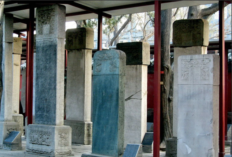 位于國子監(jiān)東面的孔廟,矗立著198塊碑刻,記錄著元、明、清三個朝代600年來51624名進士的姓名、籍貫和錄取名次??讖R碑林見證了舊時的科舉制度。