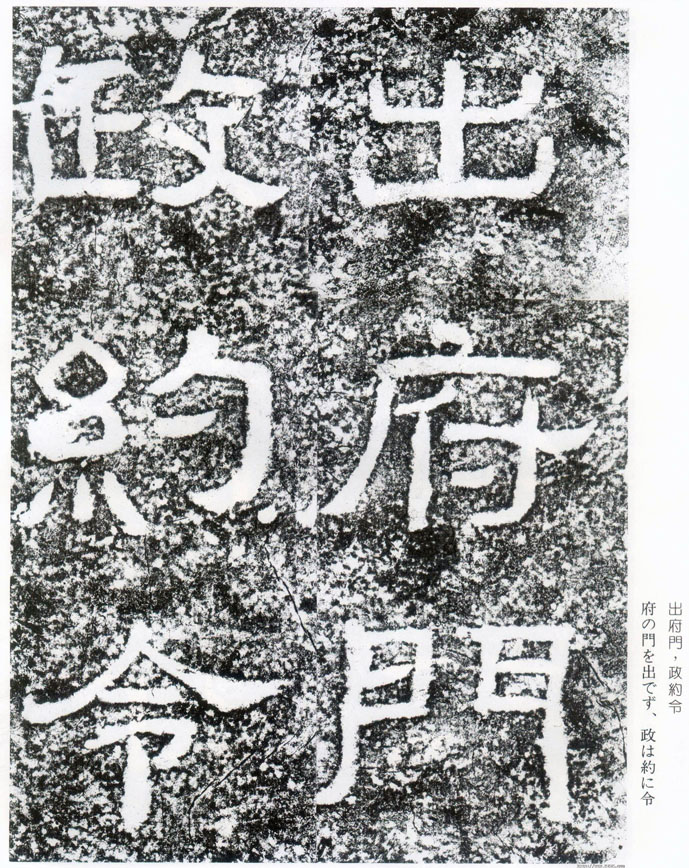(一)正文,為標準的正方形,縱橫各145厘米,20行,滿行20字,計 385字,正文內容主要記述武都太守李翕的出身、家世、以及修治西狹閣道造福于民的政績。(二)《西狹頌》篆額,“惠安西表”4字小篆一列在上,字徑長約13厘米,寬約9厘米。(三)文后題名,12行,114字,小于正文,字形略扁,其中第十行:“從史位下辨仇靖字漢德書文”,可知《西狹頌》“揮翰遣詞皆斯人”(南宋?洪適《隸續》)。(四)《五瑞圖》,位于正文前的拐角處,分別刻有“黃龍” 、“白鹿”、 “木連理”、“嘉禾”、“甘露降”及“承露人”圖像6幅和對應的題榜6處15字。在《五瑞圖》與正文間,刻有兩行題記,26字:“君昔在黽池,治崤嵌之道,德治精通,致黃龍、白鹿之瑞,故圖畫其像”。另外,在“木連理”圖下尚有4行小字題名34字(漫泐7字):“五官掾上祿上官正字君選/□□□□上祿楊嗣字文明/□□□掾下辨李京字長都/記(‘記’字較大,系后人增刻)”。