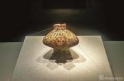 大約在公元前3500年以前,仰韶彩陶的傳播范圍逐步擴展至甘肅大部分地區和青海東部地區,并在甘肅形成以馬家窯為代表的彩陶文化。“跨越隴山”單元展現了馬家窯彩陶藝術的巔峰之作——精美絕倫的漩渦紋、神人紋等。其中,采用“泥條盤筑法”手工塑形的漩渦紋四鋬雙耳彩陶罐,飾密度與流暢度均達到史前彩陶的巔峰水準。