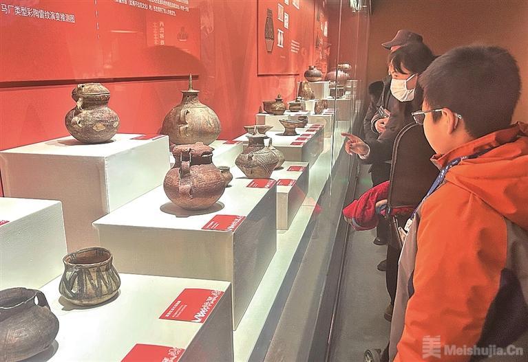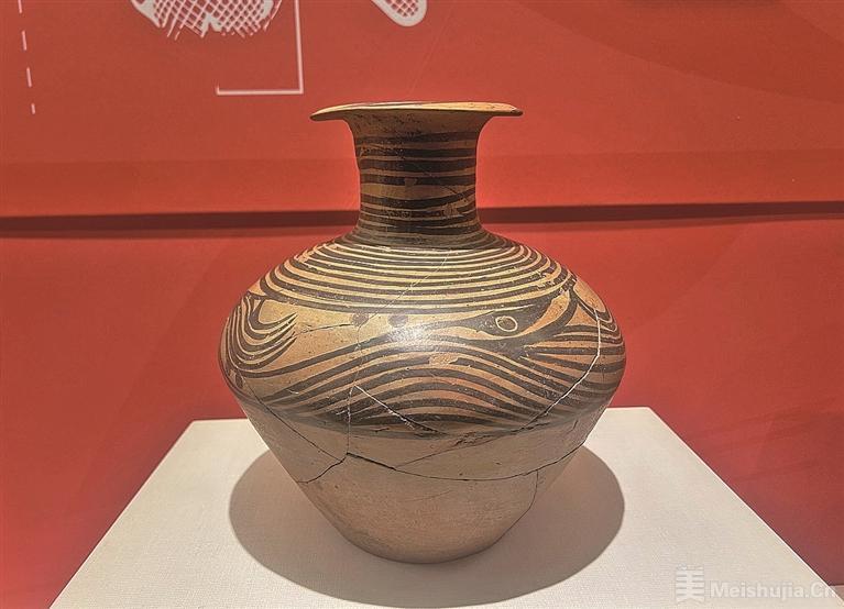 記者注意到,“從黃河到天山——史前彩陶的西漸之路”文物大展中展出的彩陶雖相隔千里,但始終貫穿著相似的審美法則、信仰表達與工藝智慧。