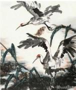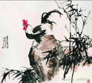 早年,他深耕鄉土,以雄雞為創作核心。家鄉院落里的雞鳴司晨,滋養著他最初的藝術感知。他注重從民族文化、古典名著與民間傳說中汲取養分,將雞的“文、武、勇、仁、信、義”六德融入筆墨,讓雄雞成為美好社會與信義鄉土的人格化身。《故鄉之戀》《希望的田野》筆力雄健;《一聲啼鳴散天星》氣象開張;《春水悠悠故鄉來》則盡顯運河水鄉溫潤靈動。他以大筆觸寫風骨,以細筆墨寫生趣,形成“大處見氣勢,小處見精神”的獨特境界。