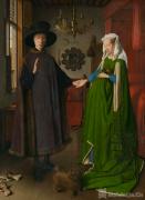 大約在20年后,同樣身在北歐的畫家楊·凡·艾克畫下了更著名的綠衣女子——商人阿爾諾芬尼的新娘。《阿爾諾芬尼夫婦像》描繪了一對夫妻,但衣物融入背景的新郎顯然沒有穿著鮮綠色胡普蘭衫且被后面紅色婚床襯托的新娘惹眼。在中世紀(jì)和文藝復(fù)興時(shí)期,紅色是貴族階層的常用色,特定的藍(lán)色象征著高貴,綠色多被賦予了商人、銀行家以及士紳階層,也是一種彰顯地位的顏色。阿爾諾芬尼出生于意大利,很早便來到弗蘭德斯地區(qū)做生意,其家族以貿(mào)易絲綢及其他織物為主,富裕且有一定影響力。