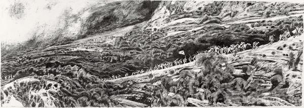 連環(huán)畫《地球的紅飄帶》是畫家沈堯伊根據(jù)作家魏巍的同名長篇小說改編創(chuàng)作的,整個創(chuàng)作過程歷時6年(1988-1993年),以追求極致的真實感為核心,充滿了艱辛與執(zhí)著。為了彌補長征影像資料的空白,沈堯伊在創(chuàng)作期間四次重走長征路,深入貴州、四川、甘肅等地,翻越大雪山、過草地,沿途進行大量速寫和照片記錄,力求真實還原歷史場景。創(chuàng)作時,藝術家更在細節(jié)上反復推敲,例如紅軍的衣著、裝備等,都力求符合歷史真實。創(chuàng)作態(tài)度極為嚴謹,對于不滿意的部分會推翻重畫,整部作品共包含926幅畫稿,每一幅都傾注了大量心血。