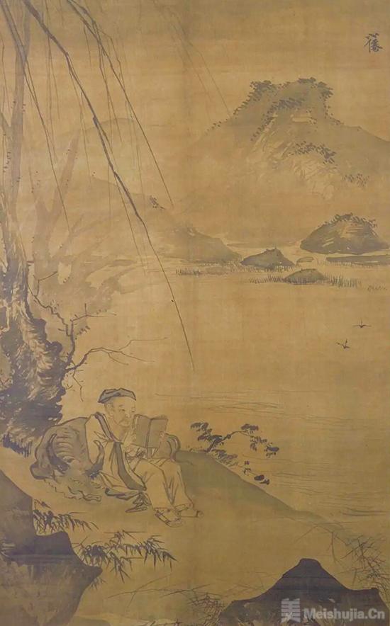 畫面的遠景,是淡墨暈染的山巒,輪廓朦朧,如在輕煙薄霧之中,為這片郊野添了幾分悠遠。幾只飛燕掠空而過,為靜謐的場景添上一抹靈動生機。吳偉用筆灑脫勁健,線條清朗利落,將文人寄情書卷、自在從容的狀態(tài)描摹得真切動人。畫中景象似在訴說,心若安處,一木一石,皆是讀書佳境。