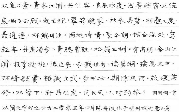 [楷書 羽閑詞]--硬筆作品