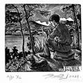 朝(木口木刻) 起源于15世紀(jì)歐洲的藏書票,是一種具有藏書標(biāo)識(shí)的微型版畫,發(fā)展到現(xiàn)代已經(jīng)有比較規(guī)范的格式體例,例如通常票面會(huì)包含拉丁字母EX-LIBRIS與票主的姓名,意為某人的藏書。它通常被貼在書籍的前環(huán)襯或扉頁。藏書票因書而生,與藏書、閱讀以及票主的個(gè)人喜好密不可分。 藏書票畫面是藏書票創(chuàng)作和欣賞的重要內(nèi)容。在我個(gè)人的藏書票創(chuàng)作實(shí)踐中,閱讀始終是重要主題。在閱讀主題中,對于閱讀空間的構(gòu)建又是我非常感興趣的一點(diǎn),我愿意將其稱為打造詩意棲居之所。海德格爾在對荷爾德林“詩意地棲居”這一命題的闡釋時(shí)強(qiáng)調(diào),